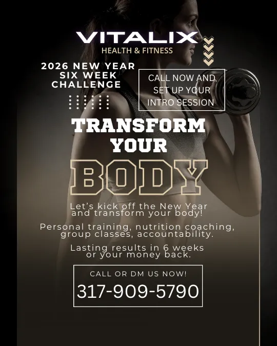 Vitalix Health & Fitness’ 6-Week Challenge in Carmel, IN helps you drop 15–25lbs with expert personal training, custom nutrition, accountability, and real results!